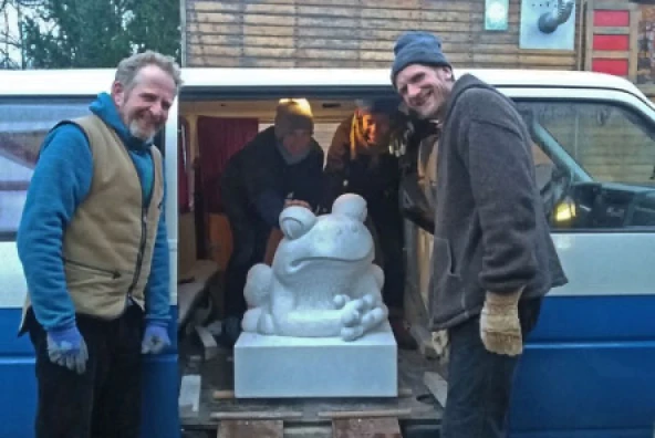 Die Lösung war, den Frosch direkt dort zu in Stein zu hauen, wo der Marmor herkommt.