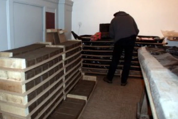 Achthundert Ziegelsteine sind fertig gebrannt und liegen gestapelt im Hof des Künstlerhauses in der Ottestraße 1 in Eckernförde. Im Sommer sollen sie alle in die Pflasterung eingepasst werden.