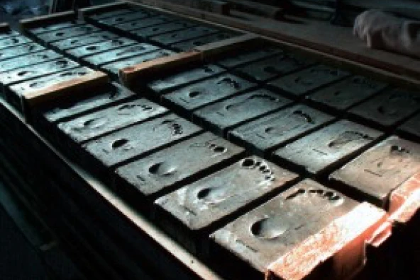 Die Rohlinge mit den Abdrücken der Kinderfüße werden auf Bretter gelegt und mit einer Nummer versehen. Wenn sie etwas angetrocknet sind (nach einem ½ Tag etwa), werden die Vornamen der Kinder hineingedrückt.