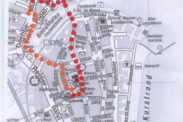 Die Spuren beginnen am Rathaus. Im Hintergrund sieht man die Nicolaikirche. Hier beginnt die andere Spur.